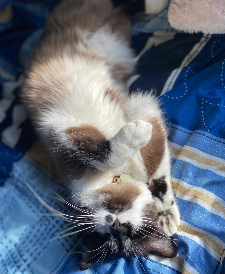 this is my cat bug he means the entire world to me :33 meow is a snowshoe siamese cat! he uses he/him and meow/meows pronouns! ☆:.。.o(≧▽≦)o.。.:☆